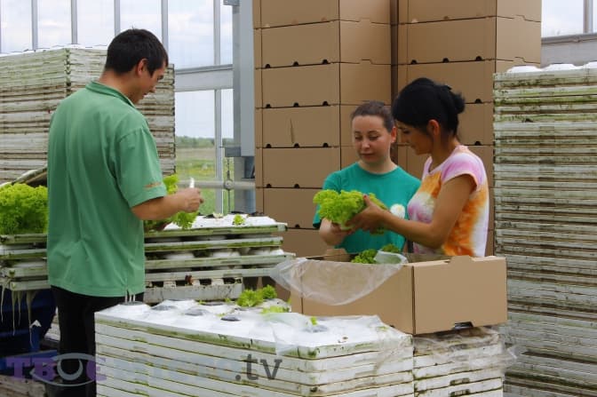 Двоє жінок дбайливо витягають маленькі саджанці салату й переносять їх у більші пінопластові форми. Одна з двадцяти п’яти співробітниць підприємства, пані Леся, працює тут лише кілька місяців. Сьогодні о сьомій ранку вона отримала завдання пересаджувати рослини. Завтра може опинитись на іншій позиції – саджати насіння, обрізати вже стиглі кущики або фасувати їх в упаковку.