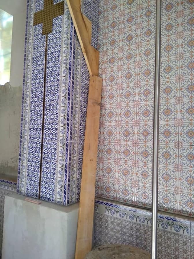 Додамо, раніше з підлоги у церкві збили плитку, виготовлену на фабриці Івана Левинського.