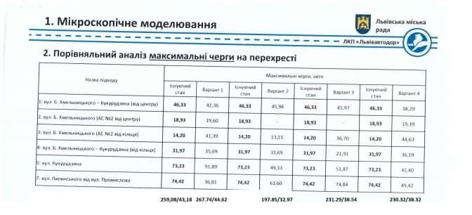 За результатами моделювання 2023 року бачимо, що найгірші показники для пропускної спроможності дорожнього вузла квазікільця на вул. Б. Хмельницького є, якщо просто запустити світлофор. Найкращі показники – Варіант 4, запровадження світлофорного регулювання руху на перехресті Б. Хмельницького – Кукурудзяна та на ділянці вул. Б. Хмельницького (виїзд із АС-2). Збільшення кількості смуг до трьох на вул. Кукурудзяна та на кільці до вул. Б. Хмельницького (виїзд із міста). Збільшення радіусів повороту.
