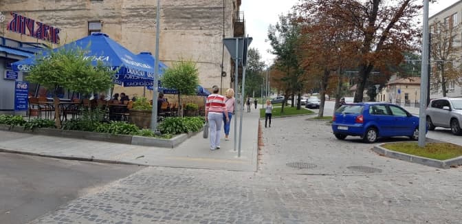 Проектант настільки познущався з даного відрізку вулиці, що люди для проходу бетонної барикади скачуть як козенята, або протоптують на газонній травичці стежину, або виходять на проїжджу частину, і лише кожен десятий, або й менше, йде лабіринтами, які придумав жартівник-проектант. Зрештою, він настільки захопився створенням цієї головоломки, що опустив деталь присутності поруч школи, куди сотні дітей сходяться зі всього району і було б добре облаштувати поруч пішохідний перехід, на необхідності якого наголошували мешканці, оскільки до найближчої «зебри» потрібно робити гак у 500 метрів.