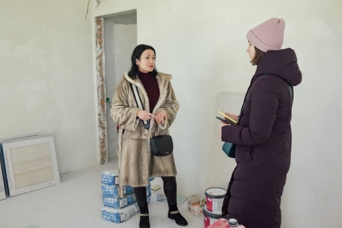 «Стіни, вікна, батареї – все, що ви тут бачите, встановлене коштом КМДА. Там навіть пропонували зробити нам соціальний ремонт: постелити лінолеум, поклеїти шпалери, поставити внутрішні двері. Але ми відмовилися. Хочемо робити ремонт самотужки», – пояснює Тетяна. Жінка поки не може сказати, у скільки їй це обійдеться, бо будуть робити не все одразу. Проте признається: поки триває війна, боїться повертатися додому через страх повторного влучання ракети. «Але як тільки ми переможемо, я залюбки сюди переїду», – запевняє вона.