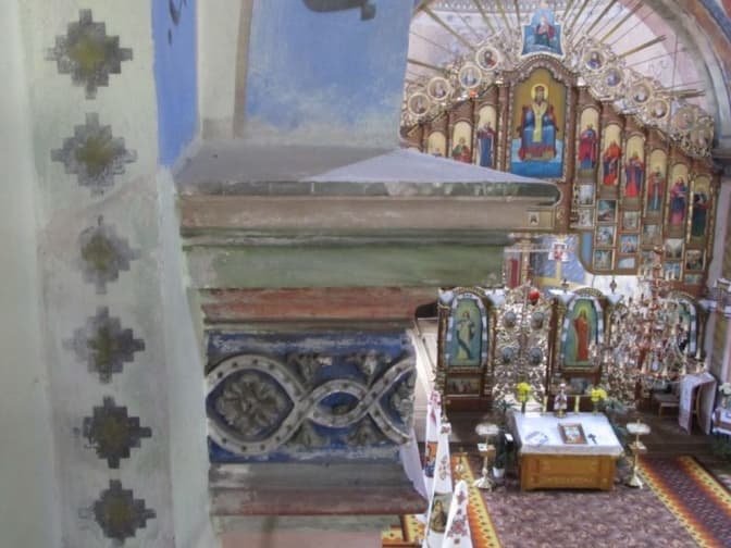 Мурована церква святого Миколая датується 1894 роком. На відміну від самовідновленої ікони Розп’яття Ісуса Христа, походження і автор якої невідомі, внутрішні розписи церкви Св. Миколая мають і точну дату створення – 1932-1934 роки, і конкретного автора – відомого художника Северина Борачека. Його манера іконопису вирізнялася оригінальністю – поєднував класику з модерном, біблійні сюжети для оформлення церкви вибирав не усталені, орнаментуючи їх квітами і подаючи нестандартне забарвлення. А от фарби готував на природній основі, використовуючи яйця і молоко. Це темперне малярство митця залишається єдиним цілісним тільки у Глинянах.