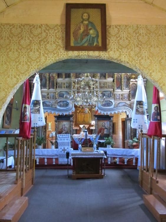 Збережений іконостас з першої половини XVIII ст. – п’ятиярусний, різьблений, золочений. Верхній ярус його у формі східців. Намісні ікони Св. Миколи та Спаса, ймовірно, датовані зламом XVII/XVIII ст., дияконські врата та, можливо, царські – 1938 р.