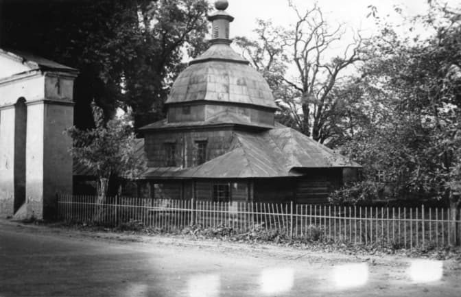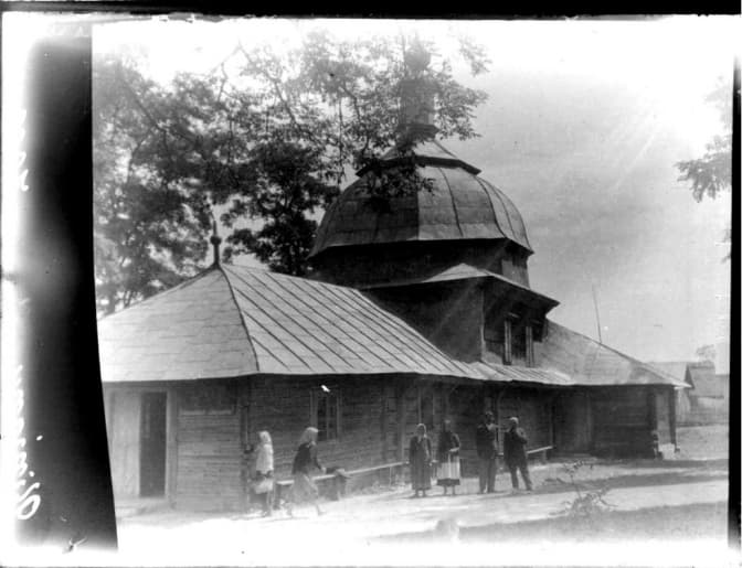 Колись на цьому місці був зведений дерев'яний храм Івана Хрестителя. Старожили переконують, що церква була значно молодшою від Успенської. Проте, на жаль, жодних відомостей про неї, окрім того, що її настоятелем до 1885 року був отець Михайло Зельський, не збереглось. Згоріла святиня під час пожежі 1886 року.