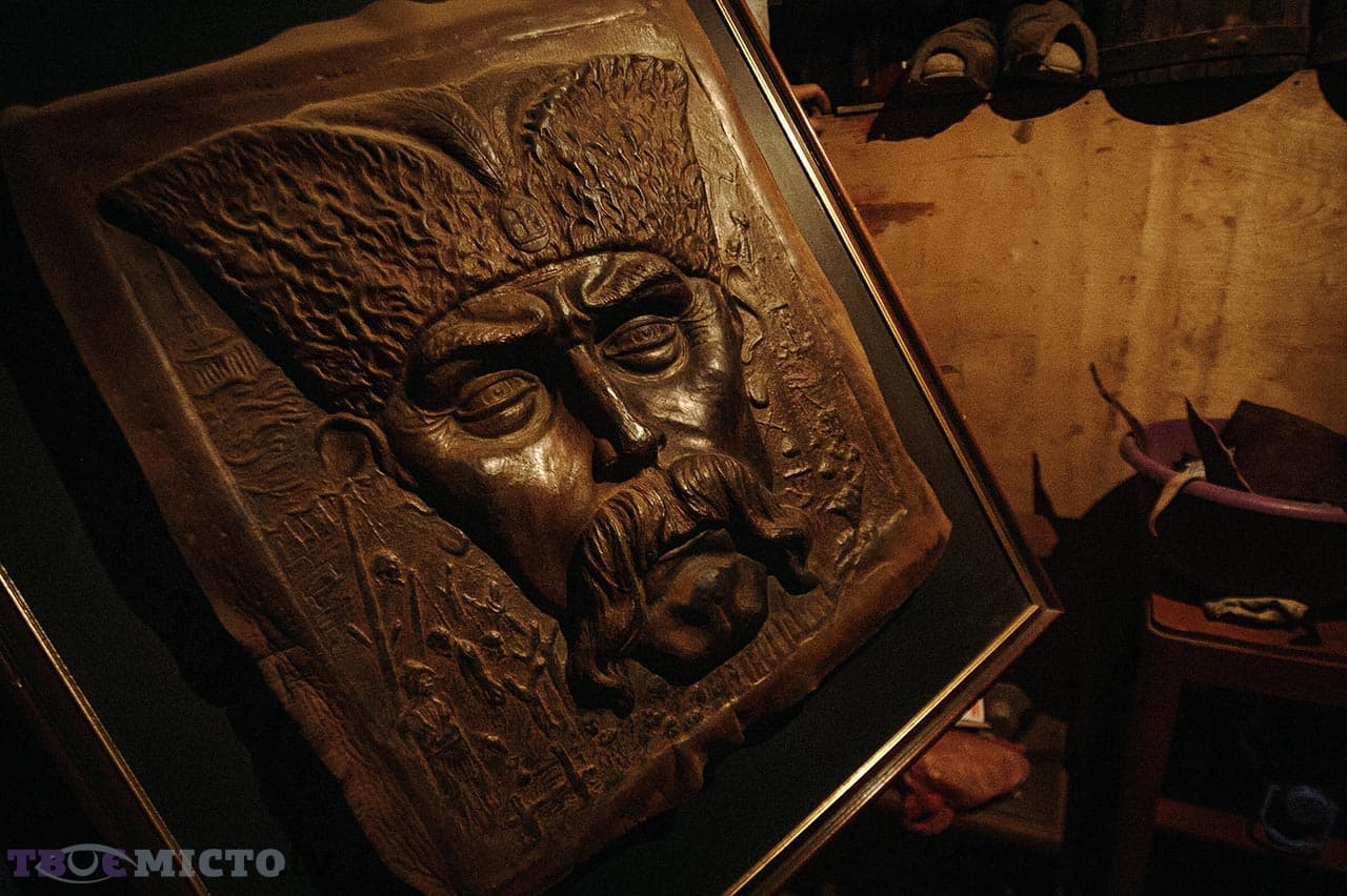 Найцікавіше мені було працювати над маленькими картинами з дволикими образами, які навіть можна крутити – це серія під назвою «Магія українців». Я раніше робив великі роботи, для яких треба кліше розміром 50 на 60 см, і щоб їх залити, то треба ставити в яму та засипати піском. Це дуже складна технологія. А тут я маю маленькі кліше, з якими легше працювати. Один з героїв – Степан Бандера. Він тримає свічку в руках та має майже сучасне вбрання.