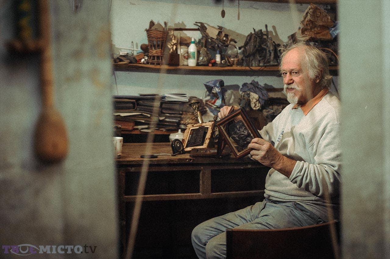 Я поїхав у Космач із своєю коліжанкою та познайомився із старим майстром Вінтоняком, який тиснув гаманці, ремінці. Мене то дуже захопило. А я уже тоді знався на литті з металу і робив об’ємні скульптурки. Це дуже схожа система із обробкою шкіри: щоб зробити тиснення, спочатку слід зробити кліше. Навіть, щоб тиснути доляри, треба зробити кліше. То є найголовнішим у процесі.