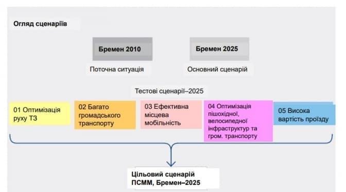 Обговорення цілей Плану міської мобільності у Бремені почали у 2012 році, а проект реалізації презентували за два роки. Місто обрало сценарій, який має привести до поставлених цілей вже до 2025. Серед іншого, у Плані передбачили регіональну залізничну станцію, розширення автобусної та веломережі, а також підвищення вартості проїзду в громадському транспорті.