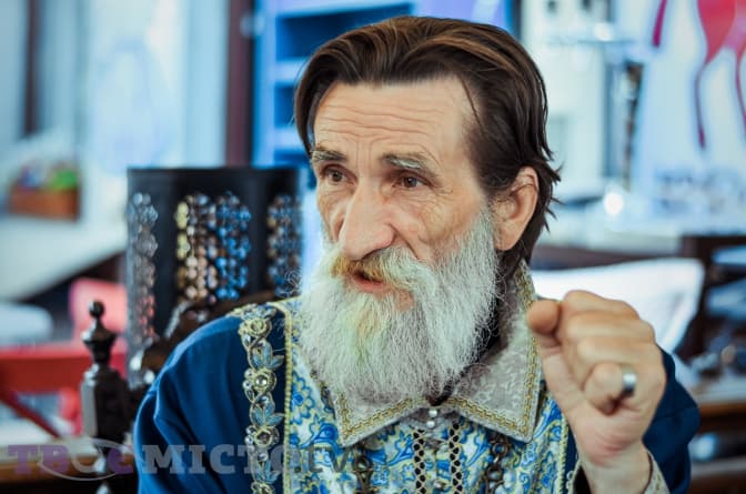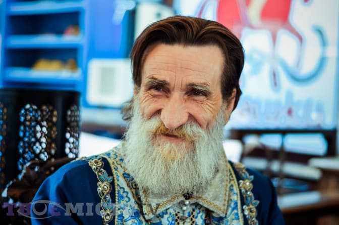 «У мене є цікава особливість – борода побіліла, а волосся на голові ні. Як було темним, таким і залишилось. Коли у Львові знімали рекламний ролик присвячений трьохсотріччю Львівської пивоварні, я пройшов конкурсний відбір, щоб там зіграти. До мене підходить англомовний режисер і каже, що не буває такого – борода біла, а волосся темне. В результаті, режисер вирішив не ризикувати, тому одягнули на мене сиву перуку», – жартує чоловік.