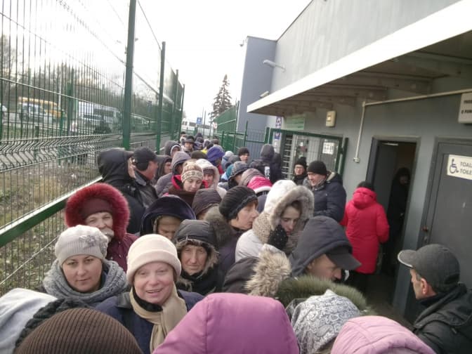 – Тут завжди такі черги, цілодобово, – каже жінка. Вона переходить до Польщі кілька разів на тиждень, а бувало, що й кілька разів на день. – Сьогодні ще пощастило, бо часом потрібно стояти чотири, п’ять, шість годин. А уявіть таке стояння в мороз! Бррррр…