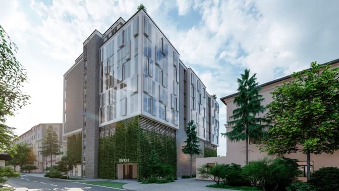 Один із майбутніх офісних будинків на території заводу «Кінескоп». Візуалізація надана ЛМР