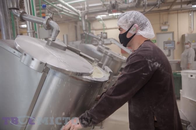 Окрім того, на сходах між цехами не можна розмовляти по телефону. До слова, сходи дуже круті, адже більшість приміщення – це стара будівля. Перед тим, як зайти у кожен новий цех, потрібно почистити взуття, халат та вимити руки, скрізь також є антисептики.