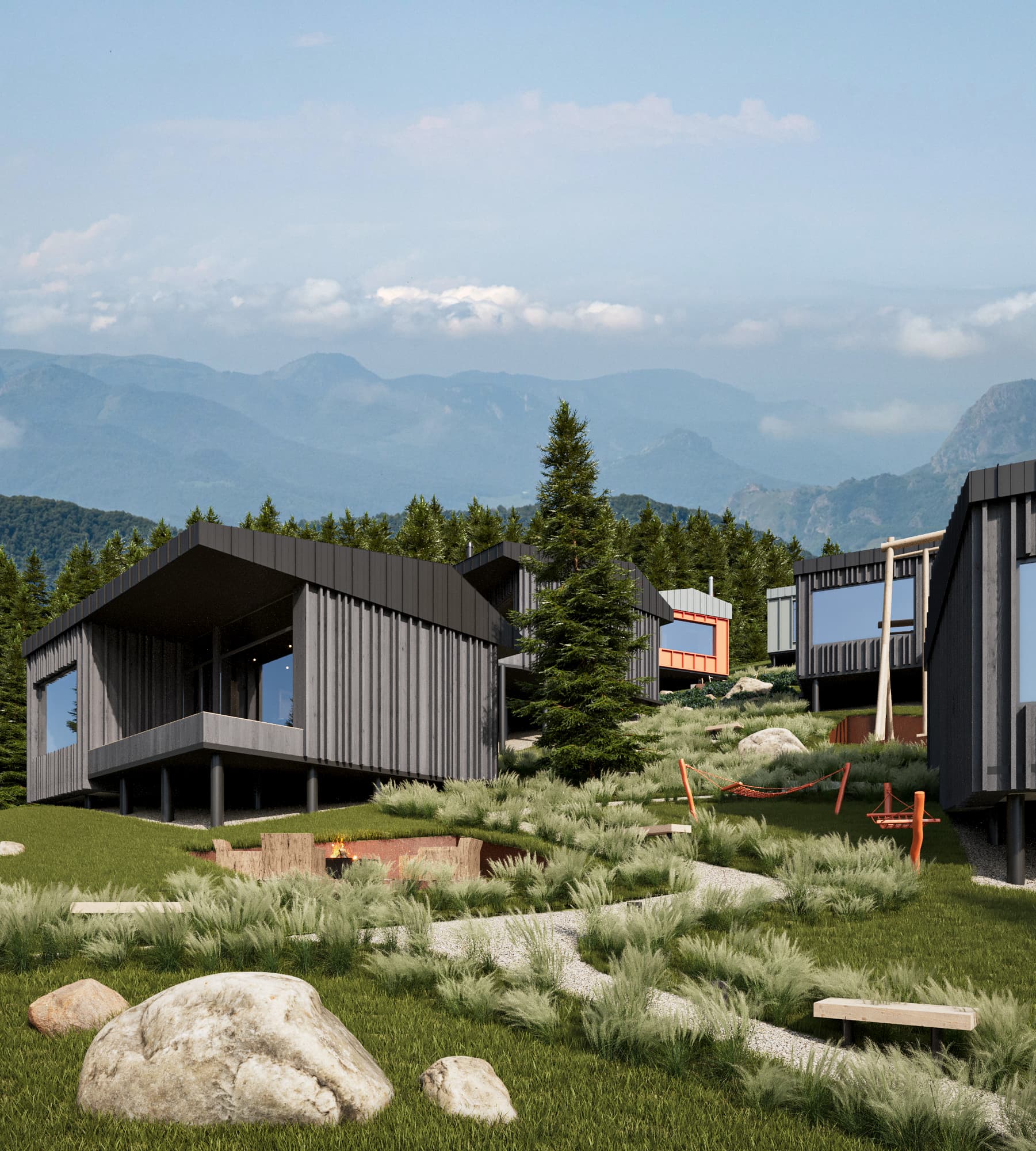 «Ми не хочемо, щоб наш проєкт був типовою готельною зоною. Наша мета — створити екопростір, де люди можуть повністю відчути природу Карпат, насолоджуватися тишею та спокоєм. Тому ми обрали локацію поруч з Буковелем, але в тихому місці, далеко від шуму та натовпів», — додає Ігор Шиба.
