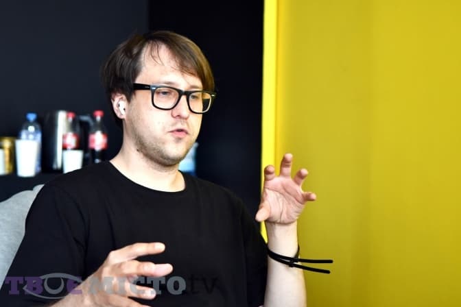 При вході нас із оператором зустрічає продакшн-менеджер Анастасія і просить почекати кілька хвилин у холі, де колір стін наче розділяє відкритість до зовнішнього світу і таємничість того, що відбувається всередині. Поки ми розглядали мінімалістичні деталі інтер’єру, з технологічного приміщення вийшов Андрій Компанієць, креативний директор deep3dstudio. Другий співрозмовник, бренд-менеджер Станіслав Онопрієнко, приєднався до нас онлайн із Києва.