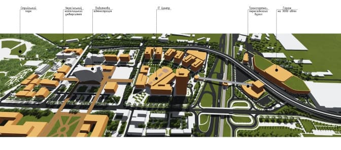 Будівництво ІТ-центру — завдання першої черги будівництва, розрахованої на 3-7 років. За проектом, через 10 років південніше від ІТ-кварталу побудують транспортний вузол. Його задача полягатиме у розвантаженні центру міста від приватних авто та пріорітет громадського транспорту.