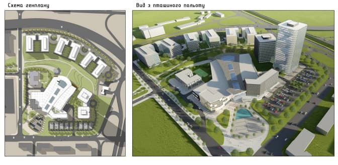 Проект детального плану передбачає, що тут з’явиться комплекс із шести 8-поверхових офісних будівель, висотного офісного центру з корпусами на 11 та 22 поверхи та підземним паркінгом. Також тут побудують тризірковий готель, університет та дитячий садок. Найбільшим за площею тут спроектували торгово-розважальний центр. Відомо, що участь у будівництві братиме кілька інвесторів, зокрема співвласник торговго центру «Форум».