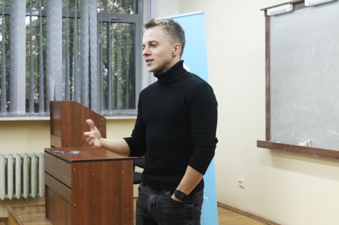 На першій лекції досвідом ділився Богдан Гнатковський. У 15 років Богдан запустив свій перший стартап Be - Sparkle.Невдовзі йому вдалось знайти команду, запустити уже другий стартап – Preenster – та залучити перші інвестиції.