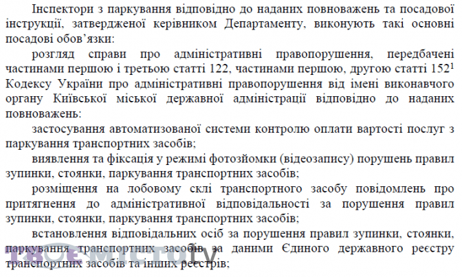 Щодо посадових обов’язків, інспектори з паркування відповідно до наданих повноважень та посадової інструкції, затвердженої керівником Департаменту, мають наступні: