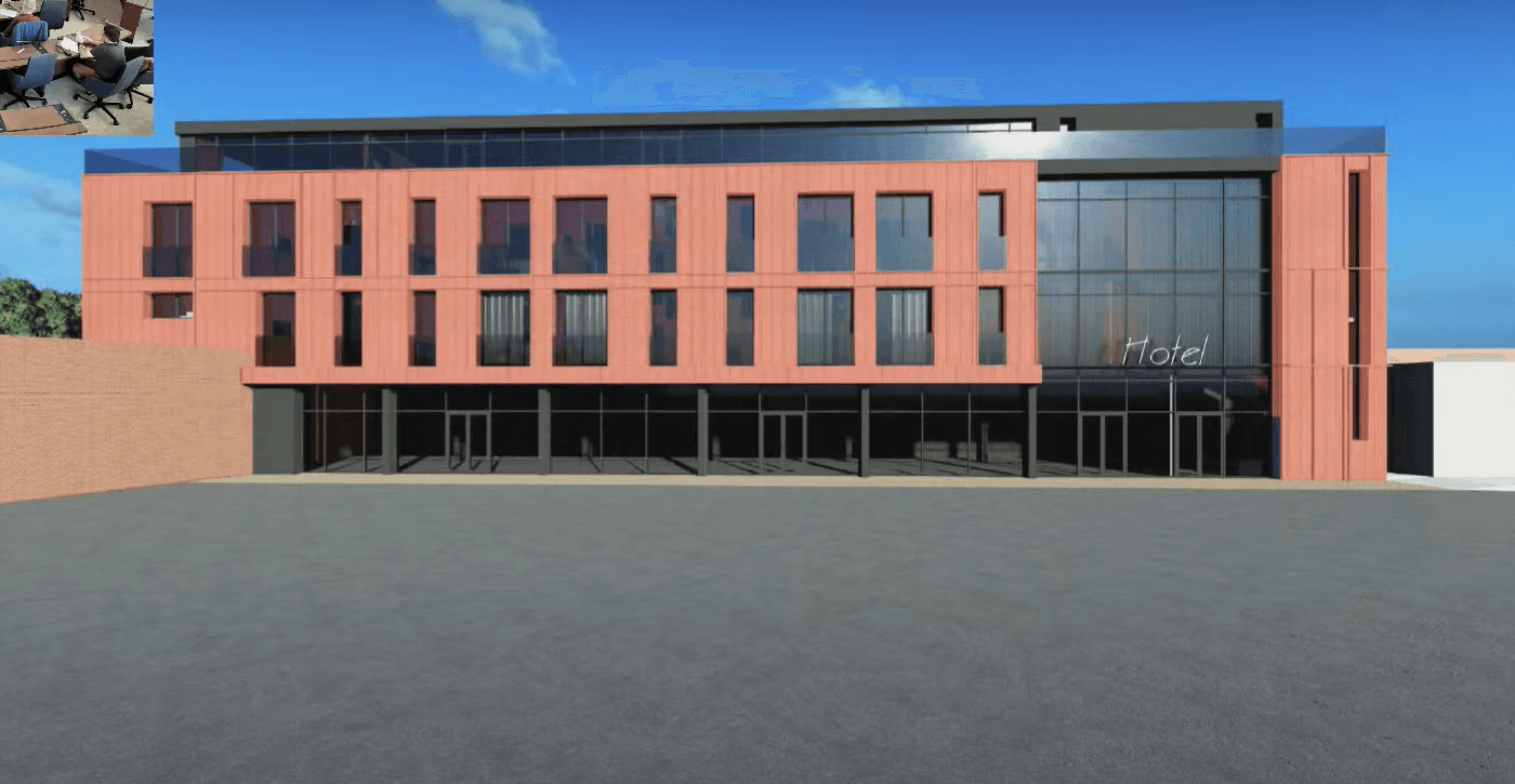 В будівлі облаштують ліфт, на першому поверсі будуть громадські приміщення, на другому і третьому поверхах – готельні номери (по 6 на поверх). Зверху буде тераса, призначена для закладу харчування. Загальна площа забудови – 381 м кв.