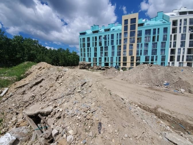 За його словами, гори будівельного сміття – просто під вікнами мешканців комплексу, а весь мотлох компанія закопує в ями на території міського парку Архангела Михаїла.