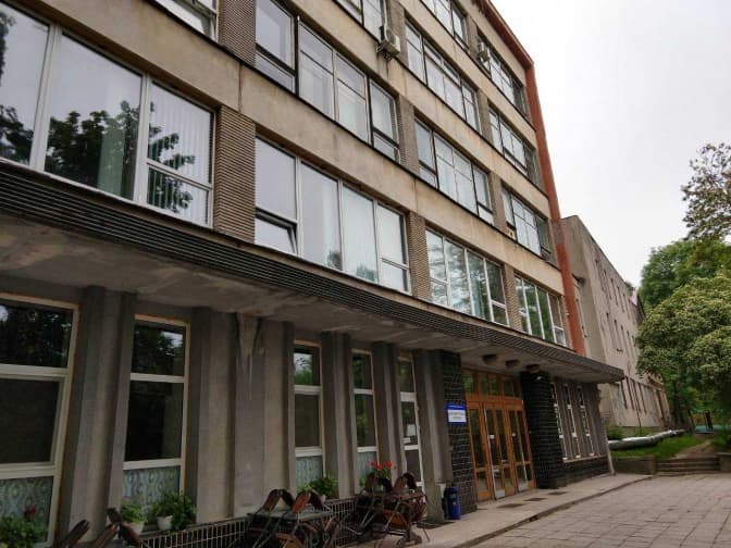 Будинок проектного інституту на Шота Руставелі, 7 збудували 1965 року за проектом Петра Юдкіна та Лариси Скорик.