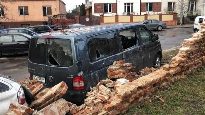 Через негоду 17 лютого у Львові на вул. Робітничій, поблизу ЖК «Парус» на вул. Кульпарківській, обвалилася частина мурованої цегляної огорожі та пошкодила два автомобілі марки Volksvagen та Skoda, які стояли припарковані.
