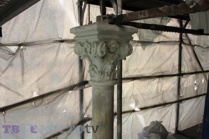 Як розповідає керівник скульптурно-реставраційного відділу «Оберіг груп», які є підрядниками проекту, Андрій Федоришин, головною причиною продовження періоду реставрації є проблемний стан архітектурних елементів будинку. За радянських часів елементи фасаду балкону, на якому зараз відбувається реставрація, були покриті цементом. Це створювало враження відносної збереженості, однак насправді під шаром цементу аркади та колони перебували в аварійному стані.