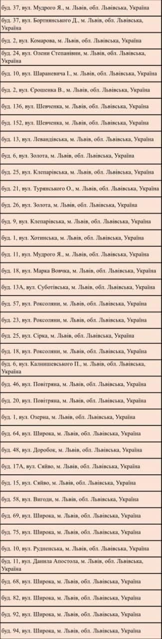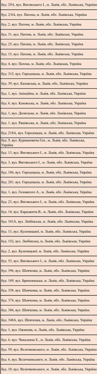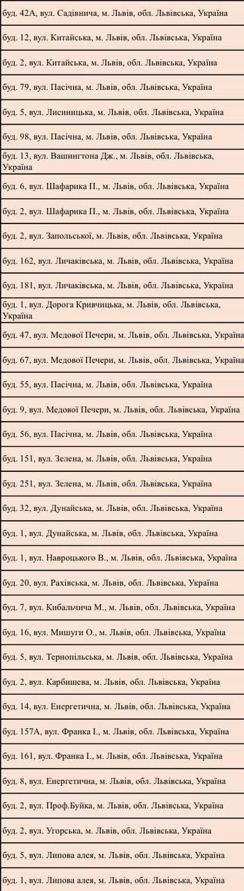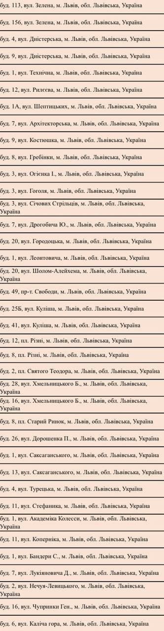 Повний перелік локацій по Україні можна переглянути на онлайн-мапі за посиланням. Локації по Львову: