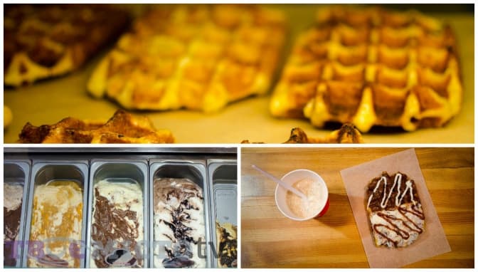 У кафе можна придбати справжні бельгійські вафлі. Власниця запевняє, що рецепт купили в Бельгії й він є таємницею. Також офіціантами в кафе є лише хлопці.