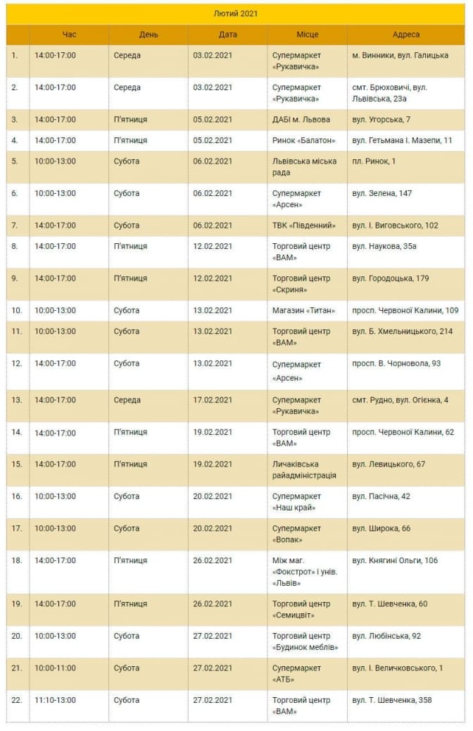 У Львові оприлюднили графік мобільних пунктів збору відпрацьованих ламп, термометрів, що містять ртуть, та батарейок. Здати їх можна буде з від сьогодні, 3 лютого, до 27 лютого. Про це повідомляє ДП «Боднарівка» ЛКП Зелений Львів.