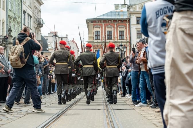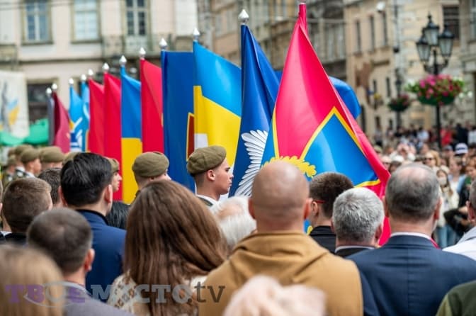 Сьогодні у Львові відмовилися від звичного розмаїття святкувань. Цьогоріч штандарт прапора Львова урочисто піднімав Роман Василюк, військовослужбовець 1-ї окремої бригади спецпризначення імені Івана Богуна. Боєць родом із Житомирщини, проте після того, як отримав поранення, проходить реабілітацію у центрі «Незламні». Перед Ратушею також встановили прапори усіх військових та оборонних структур України.