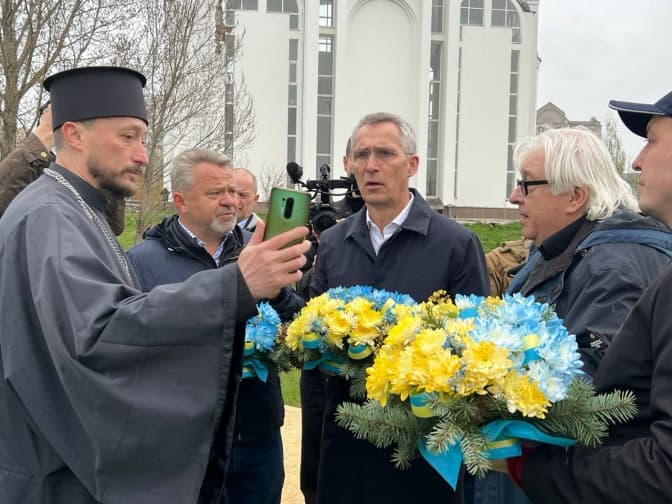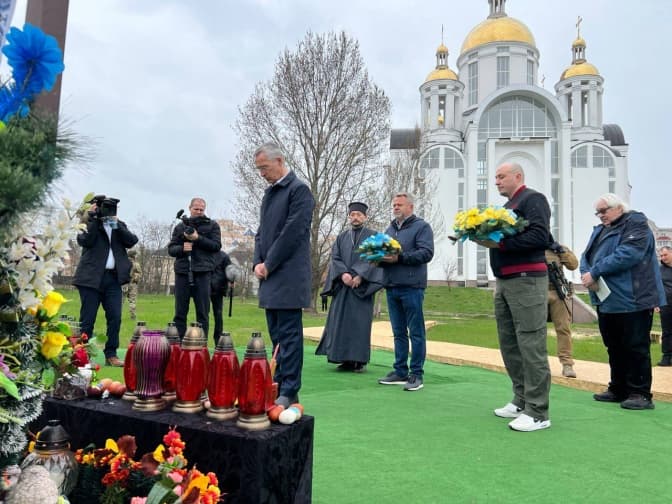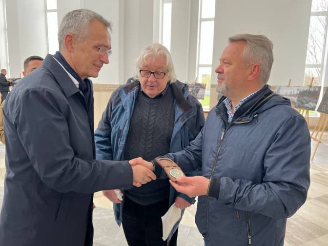 Зі свого боку мер Бучі Анатолій Федорук, який супроводжував Столтенберга, розповів, що на знак подяки подарував генсеку НАТО пам’ятну монету із символами Бучі, виготовлену з російських куль.