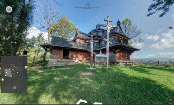 На сайті "Дерев'яні церкви Карпатського Регіону України" можна зробити віртуальну екскурсію вісьмома автентичними дерев'яними церквами українських Карпат. Серед них: Церква Вознесіння Господнього, Ясіня, Рахівський район, Закарпатська область; Церква Зішестя Святого Духа, Потелич, Жовківський район, Львівська область; Церква Зішестя Святого Духа, Рогатин, Івано-Франківська область; Церква Пресвятої Трійці, Жовква, Львівська область; Церква Різдва Пресвятої Богородиці, Нижній Вербіж, Коломийський район, Івано-Франківська область; Церква Святого Архангела Михаїла, Ужок, Великоберезнянський район, Закарпатська область; Церква Святого Юра, Дрогобич, Львівська область; Церква Собору Пресвятої Богородиці (Святого Дмитра), Матків, Турківський район, Львівська область.
