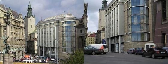 2001 року ВАТ «Львівнафтопродукт» отримує в оренду на 50 років із правом викупу ділянку площею 0,1090 га на Міцкевича, 9 для будівництва адміністративно-торгового центру. Розпочати роботи заважали судові процеси, адже до демонтажу будинку Львівська обласна спілка художників орендувала тут приміщення та оформила право власності на деякі з них. У 2006-2007 роках право власності скасували через суд.