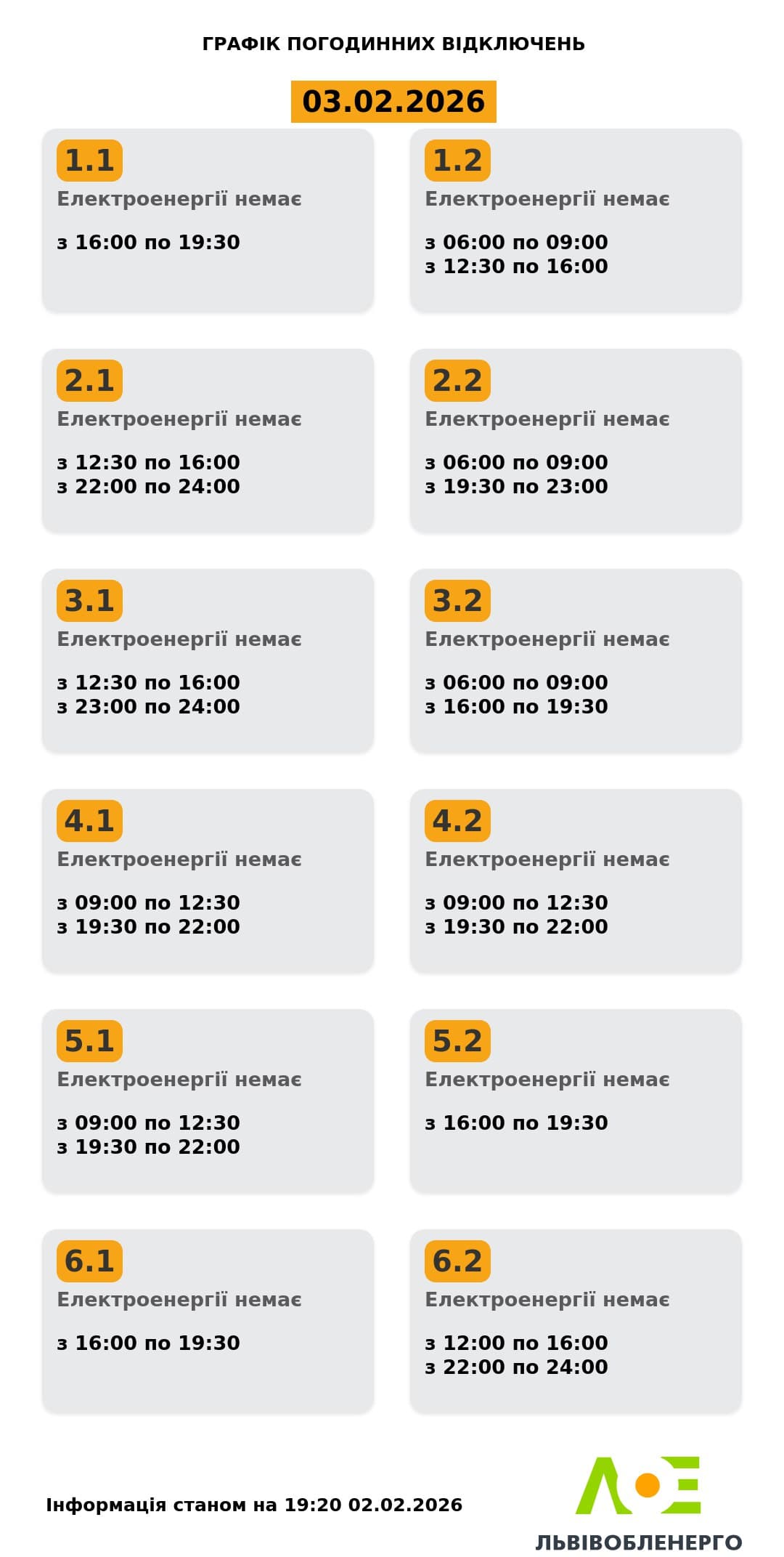 на сайті «Львівобленерго» у розділі «Чому немає світла»: https://poweron.loe.lviv.ua/