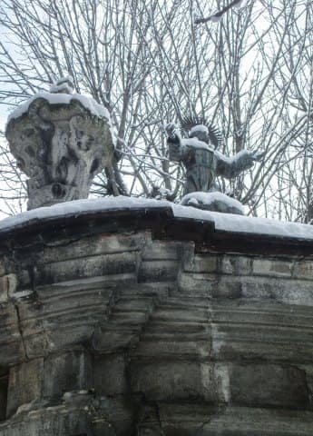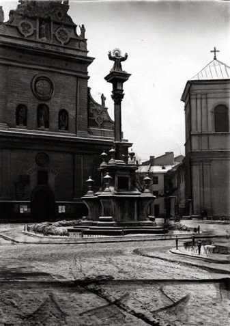 Кам’яна колона, яку спорудили перед костелом у 1730-х роках, увінчувалась скульптурою св. Яна з Дуклі, але згодом її зняли і замінили копією барокового вазону. Де фігура зараз – не відомо.