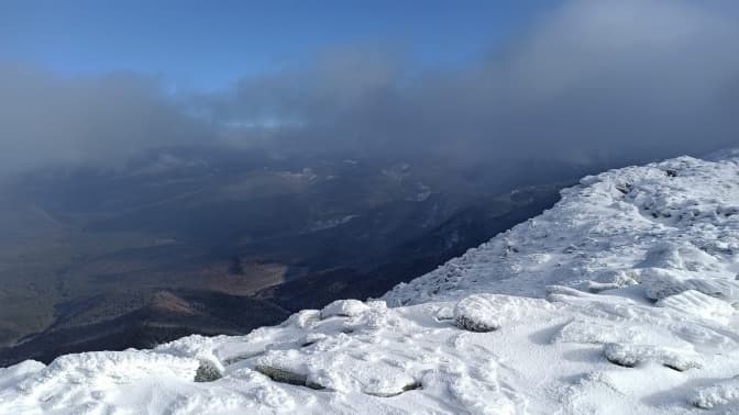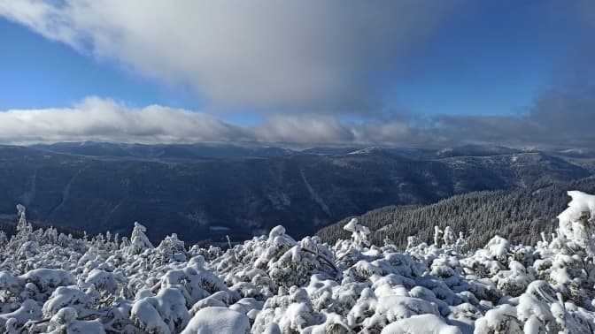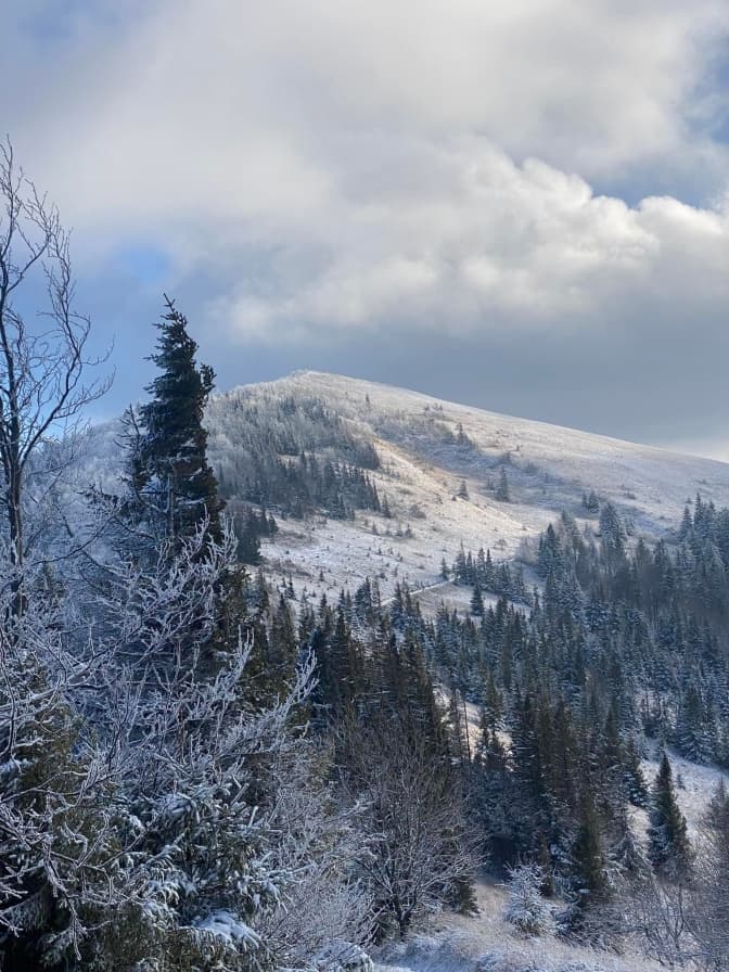 На г. Піп Іван Чорногірський сьогодні, 26 листопада, хмарно, тут обмежена видимість. Температура повітря становить -4°С. На горі намело чимало снігу.