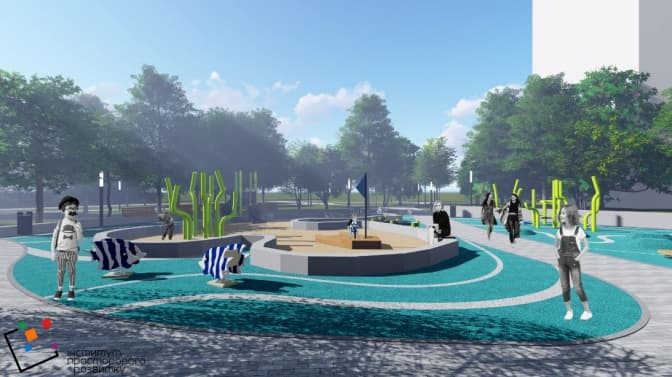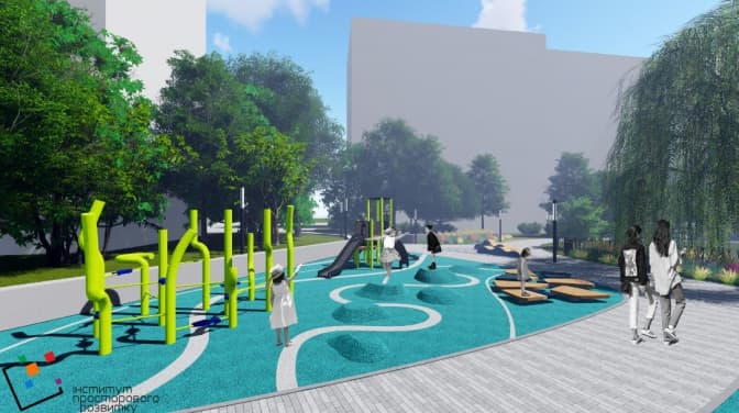 Проєкт передбачає також облаштування нового дитячого майданчика поруч, вуличне освітлення, встановлення лавочок, урн.