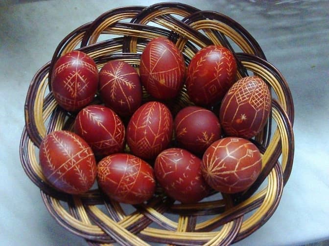 Є чотири основних види розписаних великодніх яєць: крашанка, крапанка, дряпанка і писанка, – розповідає художниця з Львівщини Оксана Войтків. Згідно з церковною традицією, фарбують крашанки у Чистий четвер.