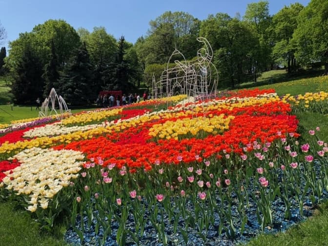 Від 3 травня на Співочому полі в Києві триває виставка тюльпанів. Окрім тюльпанів також можна побачити нарциси, іриси, крокуси, мускарі та інші багаторічники. Для дітей передбачена зона розваг та батут.
