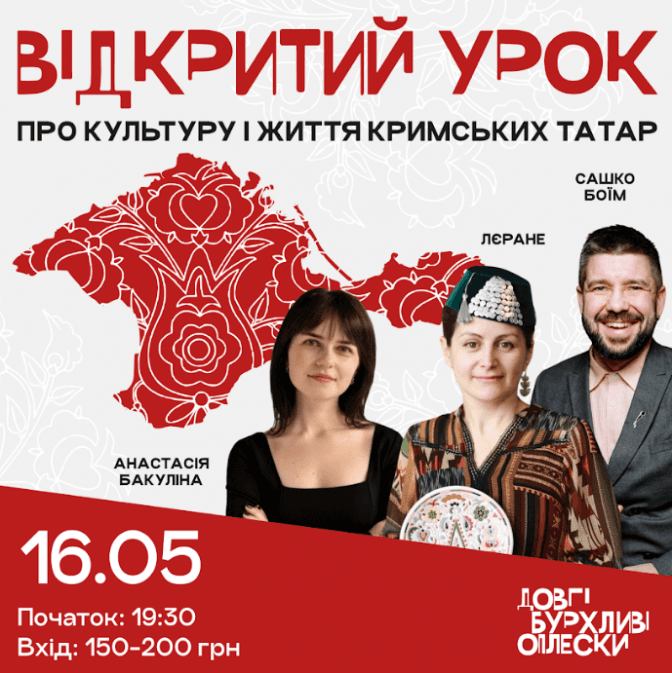 - Відкритий урок про життя і культуру кримських татар. Квитки за посиланням.