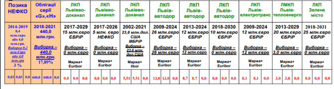 Найбільше коштів позичили ЛМКП «Львівводоканал» (кредитори – НЕФКО, ЄБРР та МБРР), ЛКП «Львівавтодор» (ЄБРР), ЛКП «Львівелектротранс» (ЄБРР) та ЛКП «Зелене місто» (ЄБРР). Ідеться про відкриті кредитні лінії на низку інфраструктурних проектів. Гривневий борг – це облігації Ощадбанку на термін 2018-2021 рік.