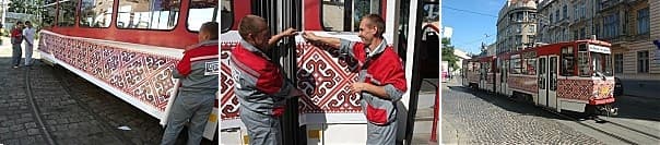 Також містом проїде і сучасний трамвай, який прикрасять наліпкою із вишивкою.