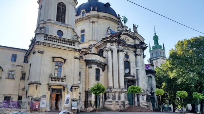 Домініканський собор — велична архітектурна пам’ятка пізнього бароко з оригінальним скульптурним оздобленням. Завдяки дружині українського князя Лева Даниловича угорської принцеси Констанції, яка була католичкою і тужила за своєю вірою, на цьому місці спорудили монастир домініканів ще у XIII столітті.