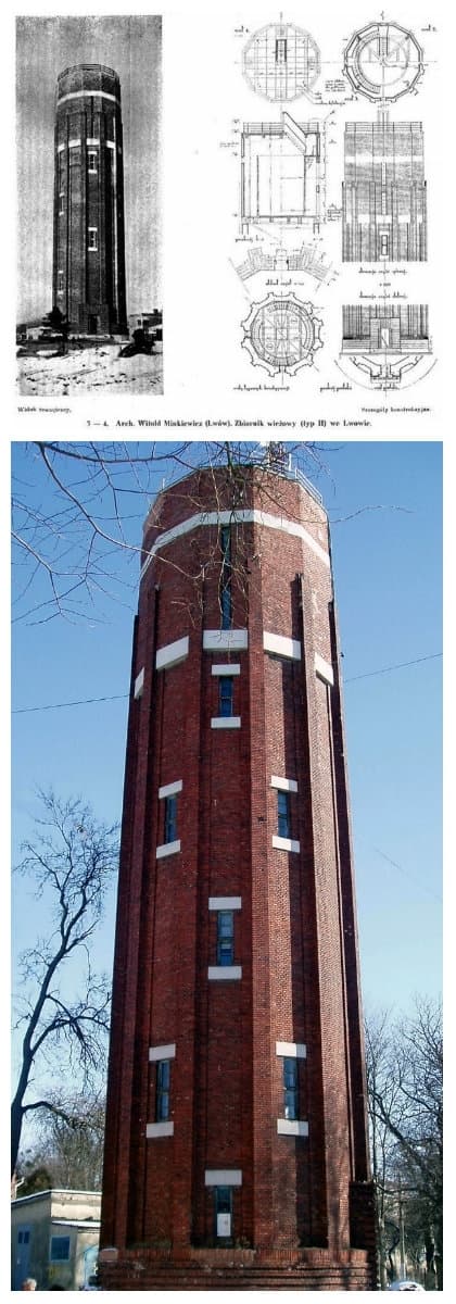 У 1933 році за проектом Вітольда Мінкевича у центральній частині Нового Львова збудовано високу червону водонапірну башту, для постачання води в даний район.