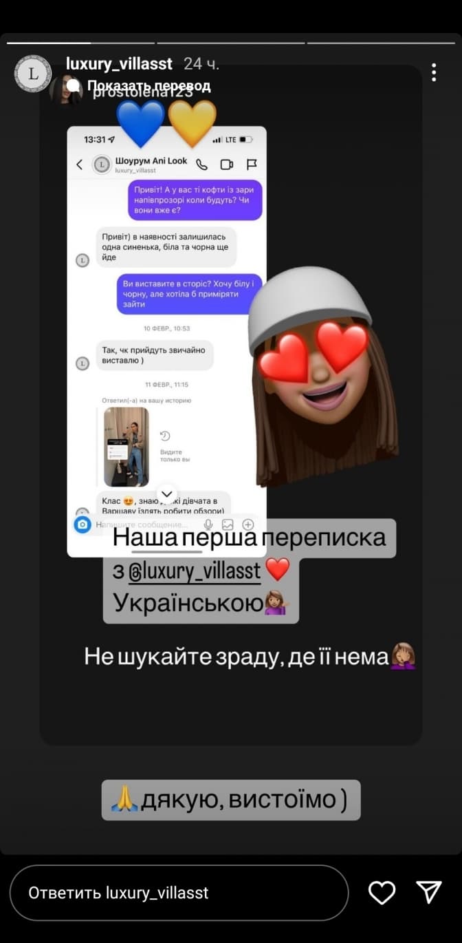Після інциденту магазин отримав низку коментарів в своєму інстаграмі з проханням роз'яснити ситуацію. Натомість у магазині вирішили своєрідно відреагувати на скандал – похизувалися «першою перепискою українською» в сторіз та попросили «не шукати зради там, де її нема».