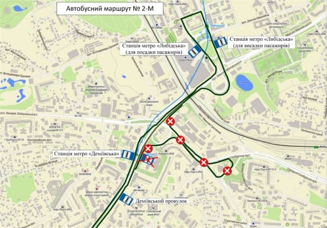 Рух автобусів маршруту № 2-М у напрямку станції метро «Либідська» буде організовано без заїзду на проспект Науки та вулицю Саперно-Слобідську.