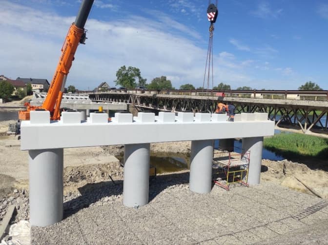 «На сьогодні вже влаштовано всі опори, ригелі. Змонтовано 15-ти та 33-ти метрові балки. Для укріплення укосів влаштовано габіонні конструкції. В найближчих планах завершення монтажу балок, армування та влаштування монолітної плити. Новий міст конструктивно інший, значно міцніший, опирається на 20-ти метрові буронабивні палі», – йдеться у повідомленні.