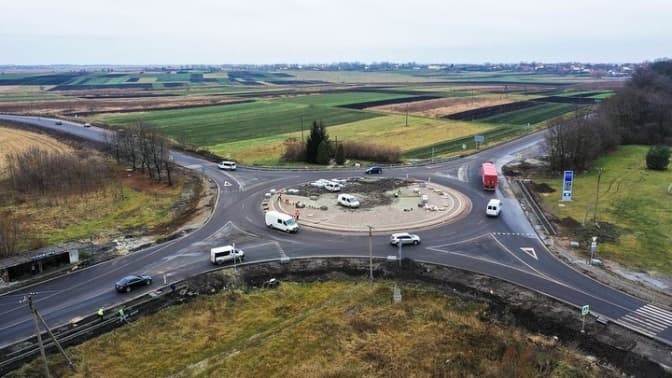 На Львівщині, поблизу Городка, завершили будівництво нової кільцевої розв’язки. Дорога уже відкрита, нині там облаштовують освітлення. Про це у коментарі Тvoemisto.tv розповів керівник Служби автомобільних доріг у Львівській області Олег Береза.