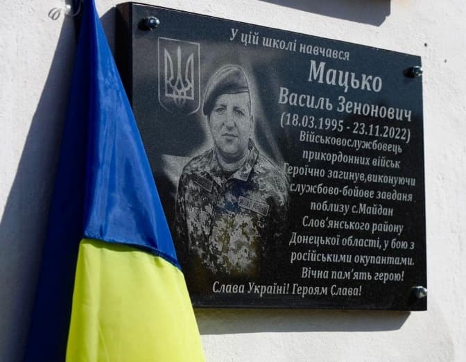 У Бориславі, що на Львівщині, відкрили пам‘ятну дошку на честь прикордонника Василя Мацька. Герой став на захист Батьківщини з початком повномасштабного вторгнення, загинув у листопаді 2022 року. Про це повідомили у Державній прикордонній службі.