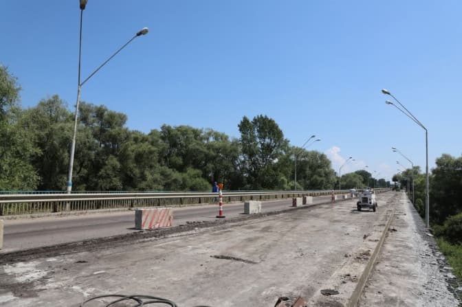 Нині на мості організували реверсний рух, демонтують старе дорожнє покриття, із одного боку демонтували також і пішохідну зону. Роботи, за словами Івана Боднара, виконують відповідно до графіку. Їх мають завершити цьогоріч до Дня Незалежності України 24 серпня.